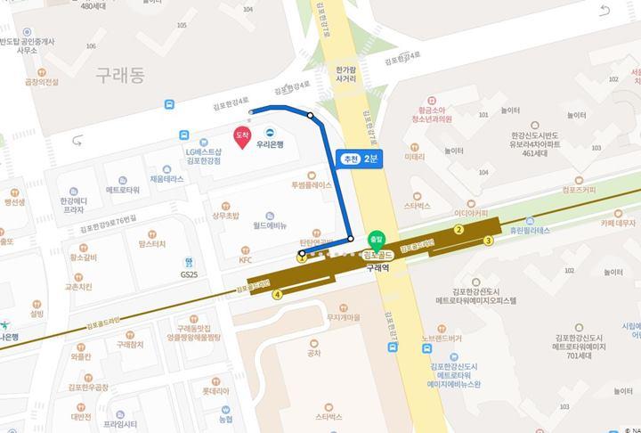 김포시 구래동에 위치한 픽클라이밍은 구래역 1번 출구에서 1분 걸으면 찾을 수 있어 접근성이 아주 좋습니다.