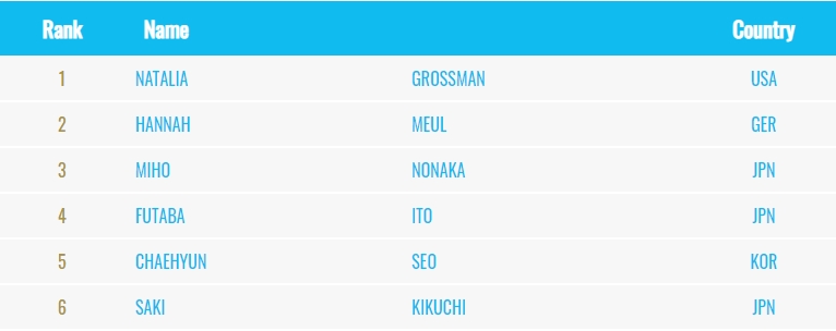 나탈리아 그로스맨, 한나 마엘, 미호 노나카 선수가 완등하며 메달이 결정되었습니다.