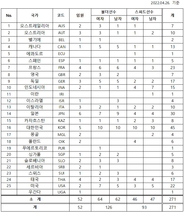 참가자격 : 2022 시즌 IFSC 스포츠클라이밍 라이센스 취득한 선수 및 팀임원