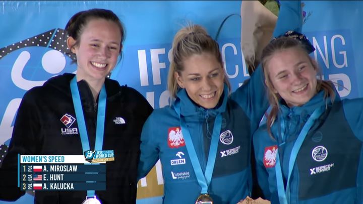 1위는 폴란드의 알렉산드라 미로스와프 선수, 2위는 미국의 엠마 헌트 선수, 3위는 폴란드의 알렉산드라 칼루카 선수가 시상대에 올랐습니다.