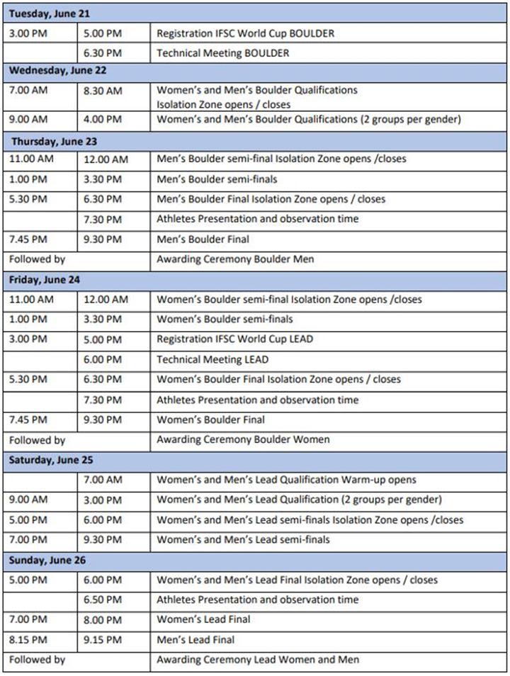 6월 22일부터 24일까지 볼더링 월드컵이 먼저 진행됩니다.